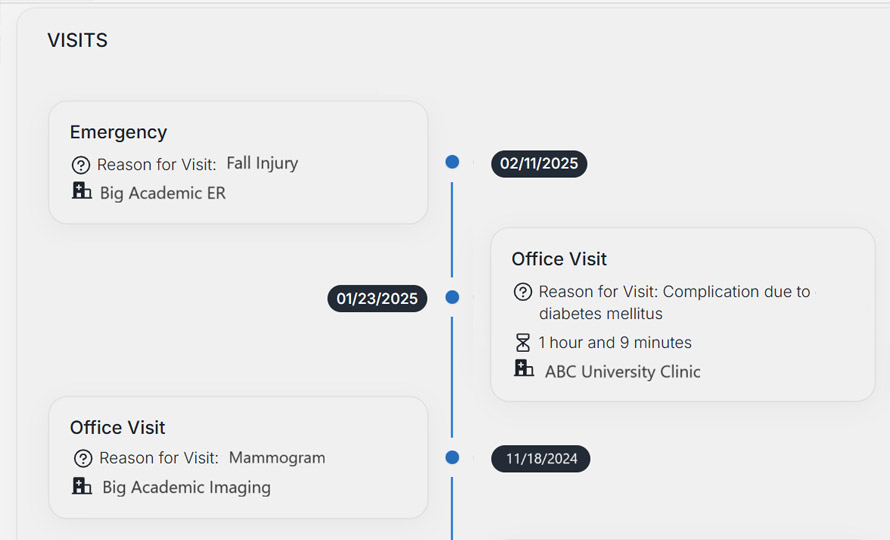 CareFlowIQ pulls fragmented, real-time patient data from EHRs, HIEs, PDFs, and physician notes and organizes it into a complete patient story.